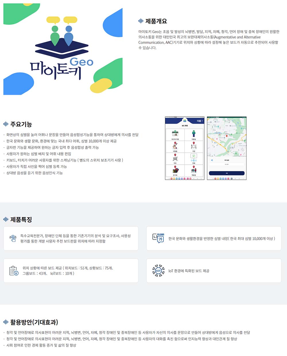 HOME > 보조공학기기 > 의사소통 및 훈련보조기기 > 언어훈련기기(11) > 마이토키GEO